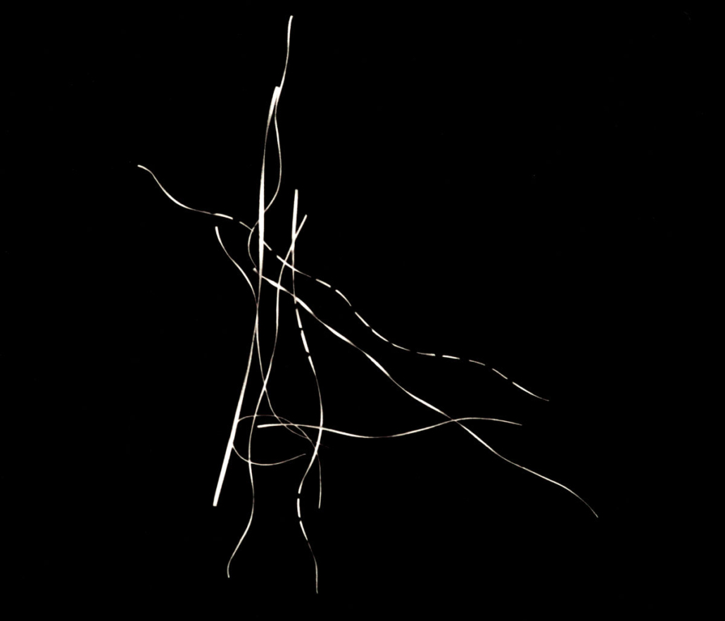 Die weißen Linien auf schwarzem Untergrund – interessante Formationen und ein kontrastreiches Spiel – entstanden durch analoge Aufnahmen von weißen Papierschnipseln auf schwarzem Karton.